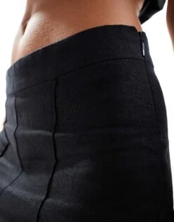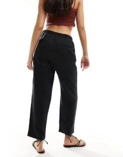 Mango Linen Straight Leg Relaxed Trousers In Black For Women