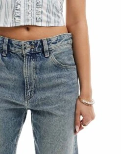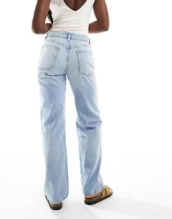 Mango Mid Rise Straight Leg Jeans In Vintage Light Blue For Women