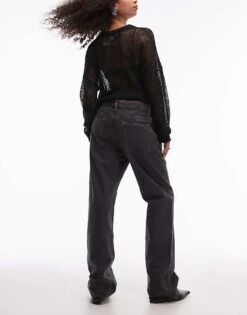 Mango Mid Rise Straight Leg Purple Wash Jeans In Black For Women