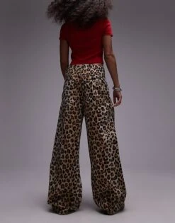 Mango Oversized Straight Leg Leopard Print Jeans In Brown For Women