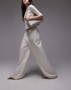 Mango Buckle Waistband Straight Leg Trousers In White For Women