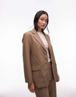 Mango Double Breasted Blazer And Wide Leg Trouser Co-ord In Brown