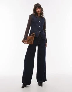 Mango Denim Look Shirt And Tie Waist Trousers Co-ord Set In Blue