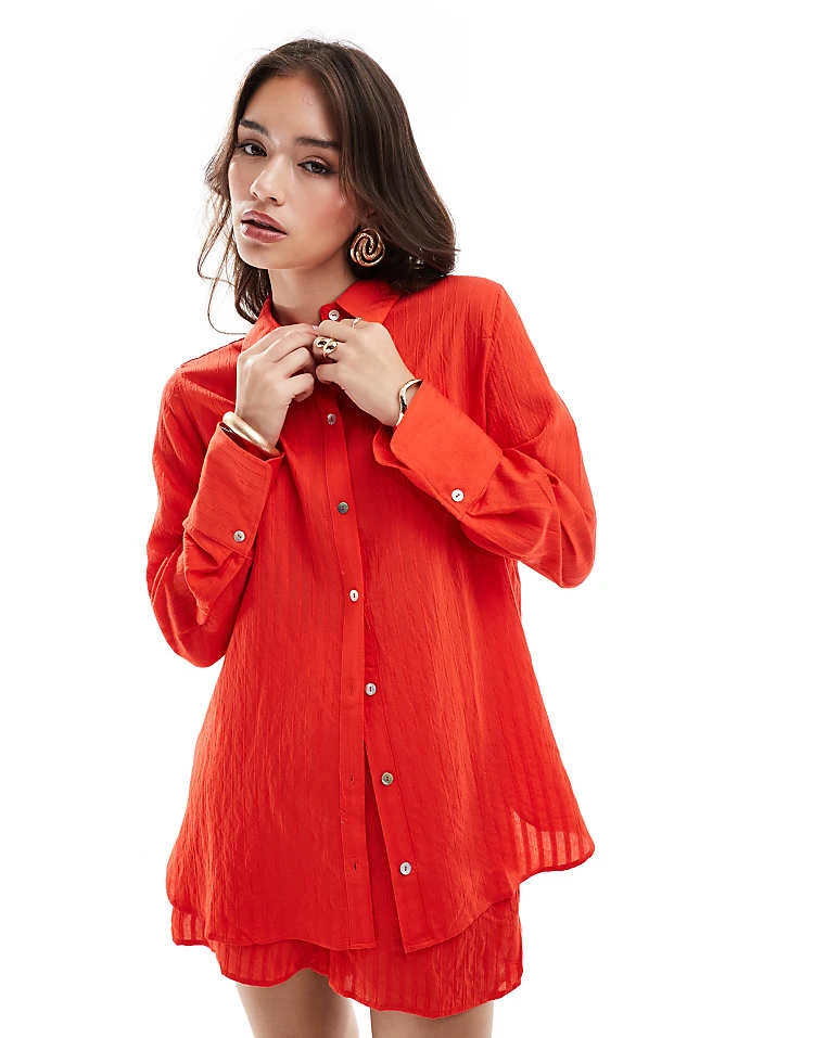 Mango Oversized Shirt And Relaxed Shorts Co-ord Set In Red
