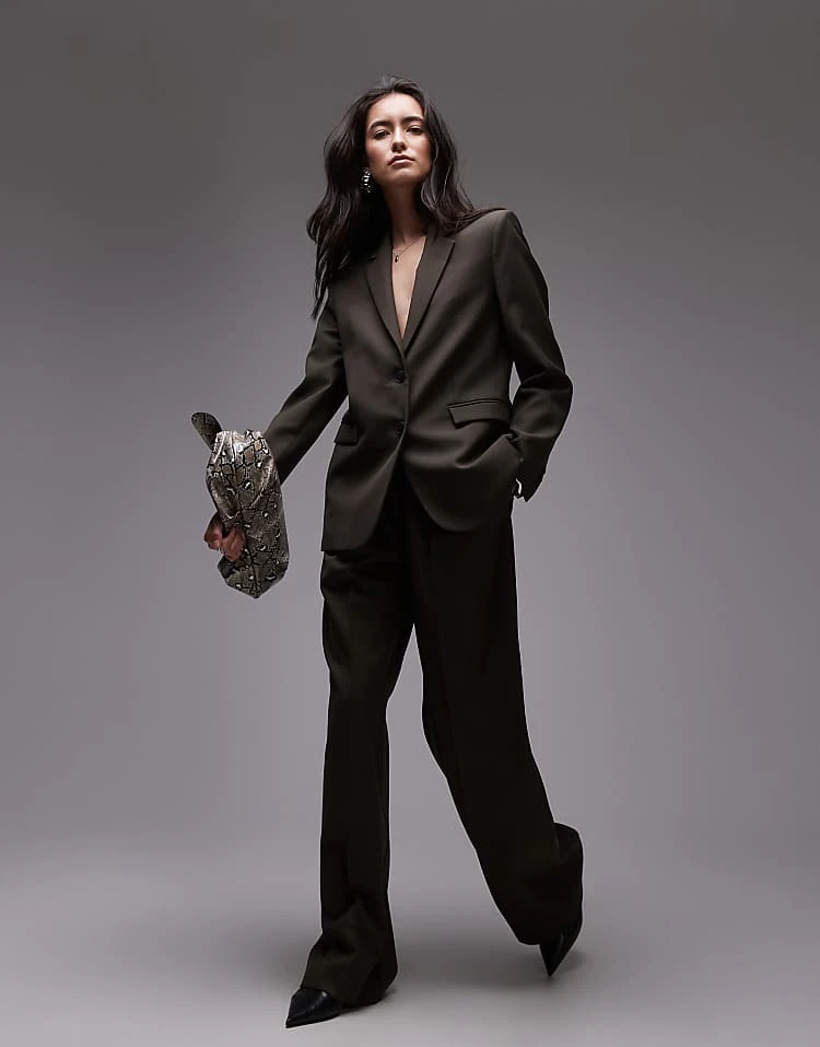 Mango Slouchy Tailored Co-ord In Washed Khaki