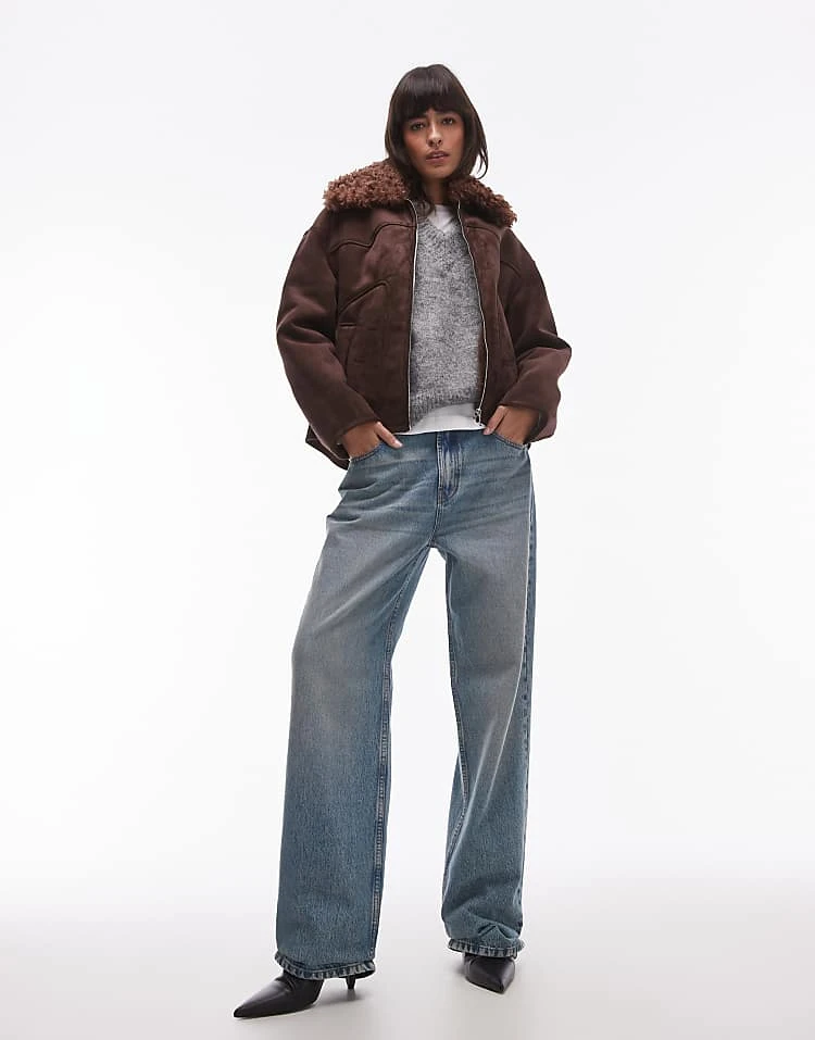 - Faux-shearling collar
