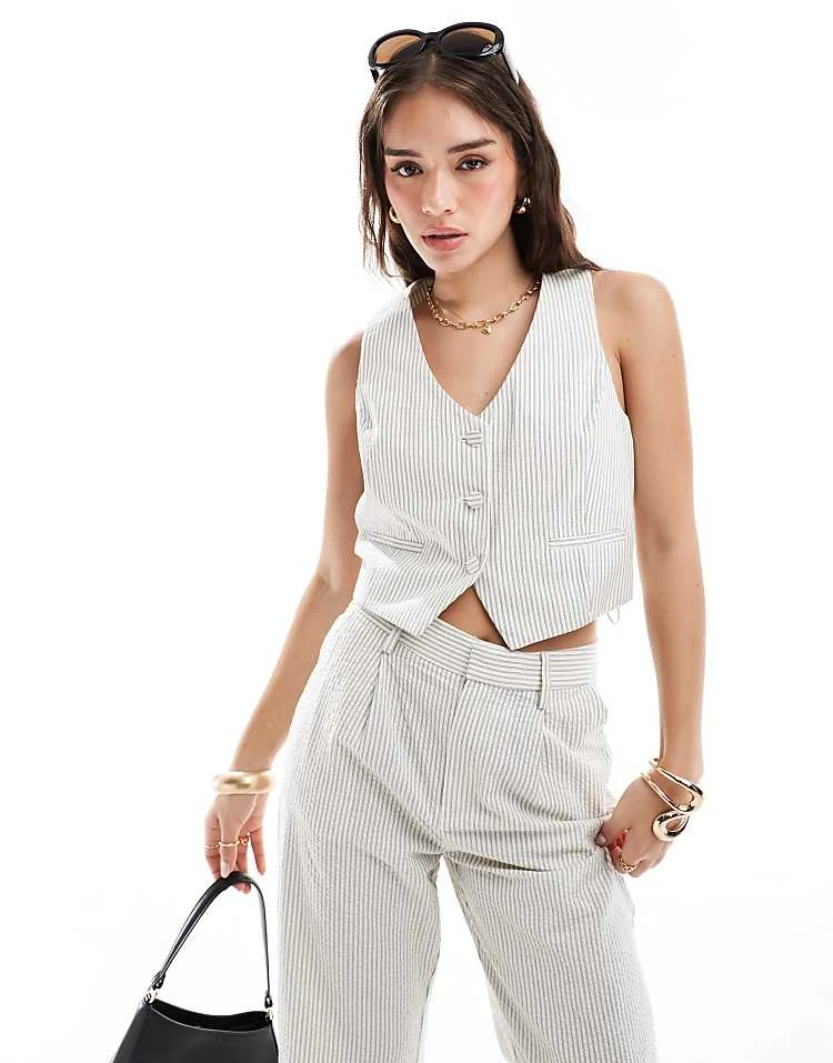Mango Tailored Pinstripe Waistcoat And Trousers Co-ord Set In Beige