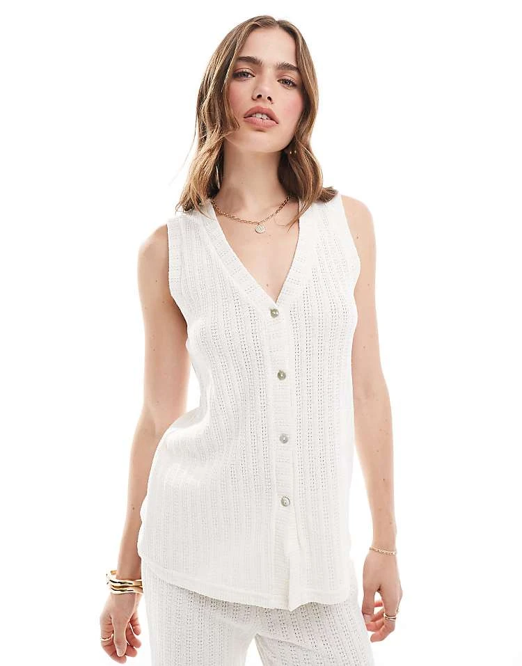 Mango Texture Waistcoat And Trousers Co-ord Set In White