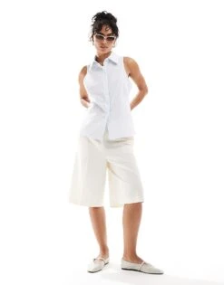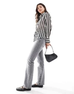 Mango Stripe Straight Leg Trousers In Black And White For Women